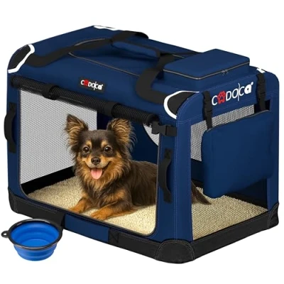 CADOCA® S Dog Crate 50x35x35cm Foldable Breathable Car Pet Transport Box Travel Robust Vet Holiday Cat Carrier Puppy Kitten Rabbit Navy Blue