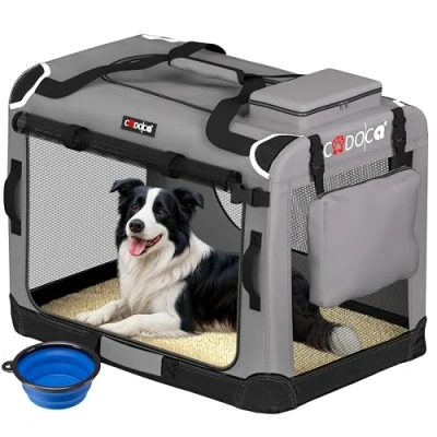 SOFT, COMFORTABLE TRAVEL CRATE FOR PUPPIES, KITTENS, LARGE DOGS & CATS This fabric dog crate provides a cosy, secure space for puppies, small dogs, medium dogs, large dogs, cats, kittens and small pets. Ideal for home use, car transport, vet visits and holidays. FOLDABLE & PORTABLE – PERFECT FOR CAR TRAVEL AND STORAGE The lightweight folding design makes it easy to store and carry like a travel bag. Ideal as an alternative to a dog car seat, dog travel crate, dog crate for car, car dog cage, pet carrier, small pet carrier or cat carrier bag.for car, car dog cage, pet carrier, small pet carrier or cat carrier bag. BREATHABLE MESH WINDOWS FOR CALM, COMFORTABLE PETS Large mesh panels provide excellent airflow and visibility, helping reduce stress during journeys. Suitable for daily use in living rooms, hallways and bedrooms as an indoor dog house, place for a cat bed or dog bed medium or pet pen alternative. DURABLE FABRIC WITH STRONG FRAME FOR EVERYDAY USE Built with robust materials and reinforced edges for long-lasting reliability. Compatible with dog beds, crate beds, dog crate mats, pet beds, and kitten beds to create a cosy resting area. IDEAL SIZE FOR DOGS, CATS & GROWING PETS Suitable for puppies, small dogs, medium dogs, large dogs, kittens, and compact pets. Fits small dog beds, medium dog beds, crate beds, dog crate mats, and supports crate training, puppy accessories, puppy pens indoors, dog training routines, and everyday pet care at home or during travel