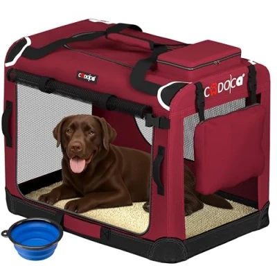 Cadoca® XXL Dog Crate 90x60x66cm Foldable Breathable Car Pet Transport Box Travel Robust Vet Holiday Cat Carrier Puppy Kitten Rabbit Dark Red