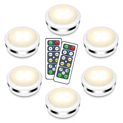 Cadrim Night Lights 6 Pack Under Cabinet Closet Lighting Wardrobe Cupboard with Remote Controls Battery Powered LED Kitchen Bookcase Showcase Brightness Adjustable Wireless Timer