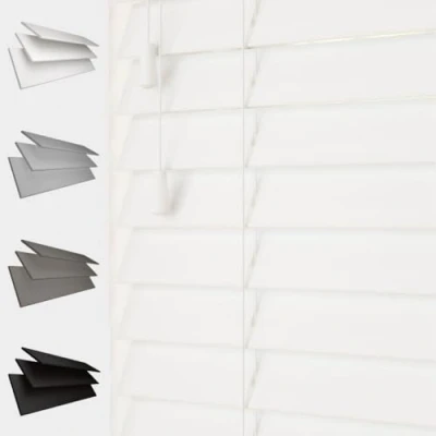 Caecus Faux Wood Venetian Blinds Home Office String 105cm x 200cm White