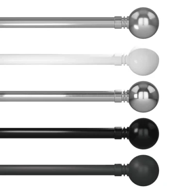 Sturdy metal curtain pole suitable for light to heavy weight curtains Telescopic action for adjustment to the perfect width e.g. If window is 300cm, simply purchase 210-400cm poles Suitable for eyelet top curtains or purchase additional rings in packs of 12 for use with tab top curtains The finals are approx 7.5cm each dependant on design All fittings and instructions included. All you need is a drill and pencil.