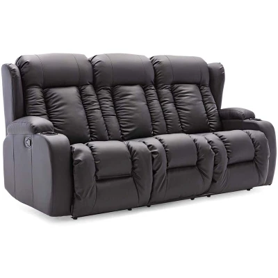 General description The comfy Caesar Manual Recliner Sofa is designed for safety and comfort, featuring a high back and soft, deep padding across the seats and armrests. Upholstered in Bond Grade leather, this smart sofa is part of the Premier collection and includes handy drinks holders at both ends, making it ideal for family movie nights. The side Latch Recliner Mechanism allows individual seats to recline, providing relaxation for everyone. Technical specifications Item Colour: Black Material: Bond Grade leather Dimensions: H: 105 cm, W: 150 cm, D: 98 cm Features: Detachable Back Rests, Electric Recliner, Sprung Seat Assembly Required: Yes Installation Assembly is required for this sofa. Usage To operate the recline mechanism, place your hand on the latch located on the side of the sofa and pull to release the footrest. To return to the upright position, gently push the footrest down with your legs to lock the seat back into place. The sofa seat will then return to its original