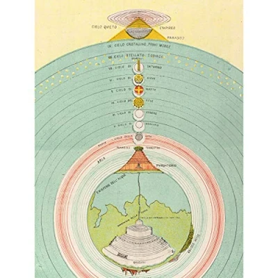 Caetani 1855 Map Chart Dante Divine Comedy Large Wall Art Print Canvas Premium Mural