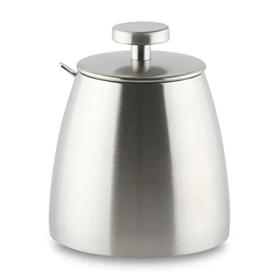 An attractive sugar bowl complete with lid and spoon With an all metal construction, this product is durable and easy to clean. Also available with a mirror finish. Compliments teapots and cafetieres from the Café Ole and Café Stal range Recommended wash by hand. Fully guaranteed against manufacturing defects