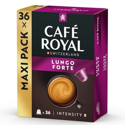 Café Royal Compatible Lungo Forte Capsules, 80% Recycled Aluminium, Rainforest Alliance Certified, Intensity 8