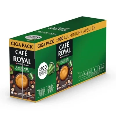 Café Royal, Hazelnut flavoured Promo Pack, 100 Nespresso (R) compatible capsules, 80 percent recycled Aluminium, Rainforest Alliance certified, Arabica coffee,
