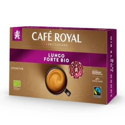 LUNGO FORTE BIO: A strong coffee with intense roasted notes and aromas of cocoa CONTENT: 50 compatible coffee pods - 100% Arabica - strength level 3/10 RECOMMENDED CUP SIZE: Lungo 110 ml to bring out the character and aroma of the coffee COMPATIBILITY: Compatible coffee pods for Nespresso professional machines SUSTAINABILITY: Our coffee is Fairtrade certified; We are committed to responsible and environmentally friendly coffee production