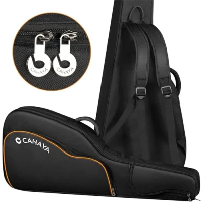 Universal Fit: Suitable for 41" to 44" guitars, please check the size guide in the product images for specific measurements. Enhanced Padding: 12mm thick interior lining provides ample protection, ensuring your guitar stays safe during everyday carrying. Thoughtful Design: Equipped with a neck fixing strap and refined zippers, ensuring secure and convenient usage. Versatile Pockets: Multiple-sized pockets for easy organization of guitar accessories, keeping everything you need at your fingertips.
