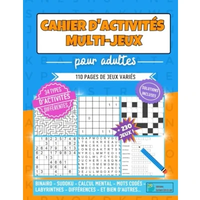 Cahier d'activités multi jeux pour adultes: 110 pages de variés, binairo, sudoku, calcul mental, mots codés, labyrinthes, différences, et bien d'autres...