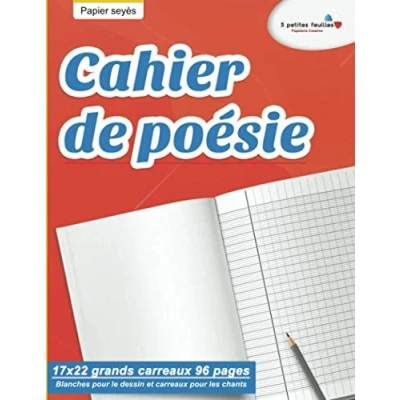 Cahier de poésie : 17x22 grands carreaux 96 pages Blanches pour le dessin et les chants Papier seyès
