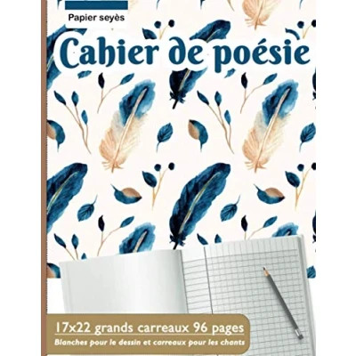 Cahier de poésie : 17x22 grands carreaux 96 pages Blanches Pour le dessin et les chants Papier seyès primaire collège