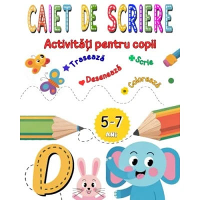 Caiet de Scriere: Activități pentru Copii 57 ani! Învață să Trasezi, Scrii, Colorezi și te Joci cu Literele!