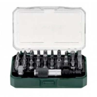 The 32-piece set includes various bits as well as adapters and a magnetic bit holder The screwdriver bits can be used manually or with a cordless screwdriver International products have separate terms, are sold from abroad and may differ from local products, including fit, age ratings, and language of product, labeling or instructions. The tool is made of chrome vanadium steel and is therefore particularly robust and durable, Weight: 0.551155655 Pounds, Manufacturer: Metabo