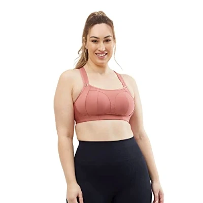 High impact sports bra with wirefree suport Moisture-wicking material that reduces friction as you move with breathable and unique cooling spacer fabric Button access to drop down nursing cups for easy, on the go access Racerback design with an easy clasp for extra support during activities Oeko-Tex Standard 100 materials and accessories. This sports nursing bra has been verified as non-irritating to the skin and free from harmful substances