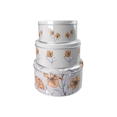 Cake Tin Storage Set of 3, Round Nesting Tins, Stackable Airtight Biscuit Container Botanical Garden