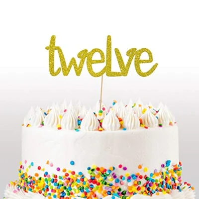 Cakeshop 12th Birthday Glitter Cake Topper, Age 12 Topper Decoration, Anniversary Double Sided 400gsm Card, Choice 14 of Colours and Loads Styles (Gold)
