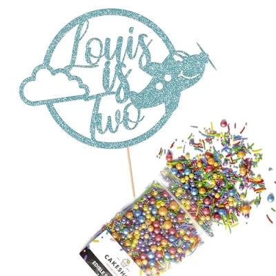 This Cakeshop Cake Decorating Pack includes 1 x 480gsm Double Sided Glitter Card Topper & 25g Cake Sprinkles (option to upgrade to 50g while customising) - perfect for your party or celebration! Cakeshop Sprinkles are Vegan, Gluten Free, Lactose free and Nut Free, all while looking amazing in striking colours and an assortment of sizes for a truly 'premium' finish Size: Sprinkles pack (perfect for a large cake) 25g, you can also upgrade to a 50g pack when customising your topper | Glitter Topper Approx 152mm (6") x 175mm (7") Toppers make a great keepsake to remember this special occasion forever, often our customers will remove the support sick and use on bedroom doors (until their next birthday!) Cakeshop Glitter Toppers are made from 480gsm premium double sided glitter card, select which colour topper you'd like then click 'Customise' to add your text personalisation and choose your sprinkles Choose from either Metallic or Rainbow sprinkles and upgrade to 50g packs in the 'Customise' section, so that you can match your sprinkles to your theme (or save them for next time!) All 'Cakeshop Cake Decorating Packs' come beautifully packed with simple to understand instructions so that you can quickly turn any cake, home made or shop bought (we wont tell!) into the perfect cake After you have added your custom information in the 'Customise Now' section our designers hand make your topper in the same font, style and topper colour as the design you've selected Cakeshop have been making the highest quality Cake Decorations since 2011 - we have thousands of design options available in our store for every occasion and theme (click 'visit the cakeshop store' above) It should go without saying - but Glitter Card toppers are flamable! We therefore recommend using only Acrylic toppers alongside candles for safety