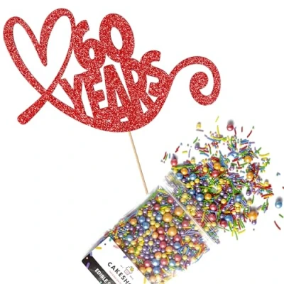 Cakeshop Cake Decoration Pack Anniversary Hearts Premium Double Sided Glitter Card Topper & 25g Party of Sugar Sprinkles for your Celebration Custom Number Decorations (Red)