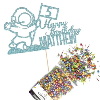 This Cakeshop Cake Decorating Pack includes 1 x 480gsm Double Sided Glitter Card Topper & 25g Cake Sprinkles (option to upgrade to 50g while customising) - perfect for your party or celebration! Cakeshop Sprinkles are Vegan, Gluten Free, Lactose free and Nut Free, all while looking amazing in striking colours and an assortment of sizes for a truly 'premium' finish Size: Sprinkles pack (perfect for a large cake) 25g, you can also upgrade to a 50g pack when customising your topper | Glitter Topper Approx 152mm (6") x 175mm (7") Toppers make a great keepsake to remember this special occasion forever, often our customers will remove the support sick and use on bedroom doors (until their next birthday!) Cakeshop Glitter Toppers are made from 480gsm premium double sided glitter card, select which colour topper you'd like then click 'Customise' to add your text personalisation and choose your sprinkles Choose from either Metallic or Rainbow sprinkles and upgrade to 50g packs in the 'Customise' section, so that you can match your sprinkles to your theme (or save them for next time!) All 'Cakeshop Cake Decorating Packs' come beautifully packed with simple to understand instructions so that you can quickly turn any cake, home made or shop bought (we wont tell!) into the perfect cake After you have added your custom information in the 'Customise Now' section our designers hand make your topper in the same font, style and topper colour as the design you've selected Cakeshop have been making the highest quality Cake Decorations since 2011 - we have thousands of design options available in our store for every occasion and theme (click 'visit the cakeshop store' above) It should go without saying - but Glitter Card toppers are flamable! We therefore recommend using only Acrylic toppers alongside candles for safety