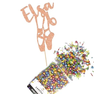 Cakeshop Cake Decoration Pack Ballet Ballerina Theme Premium Double Sided Glitter Card Topper Sign & 25g Party of Sugar Sprinkles Custom Name Decorations (Rose Gold)