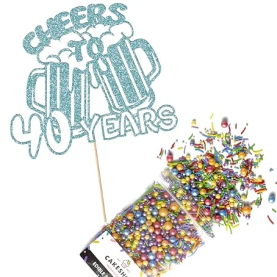 Cakeshop Cake Decoration Pack Cheers Beers Happy Birthday Premium Double Sided Glitter Card Topper & 25g Party of Sugar Sprinkles Custom Age Decorations (Baby Blue)