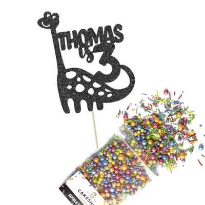 This Cakeshop Cake Decorating Pack includes 1 x 480gsm Double Sided Glitter Card Topper & 25g Cake Sprinkles (option to upgrade to 50g while customising) - perfect for your party or celebration! Cakeshop Sprinkles are Vegan, Gluten Free, Lactose free and Nut Free, all while looking amazing in striking colours and an assortment of sizes for a truly 'premium' finish Size: Sprinkles pack (perfect for a large cake) 25g, you can also upgrade to a 50g pack when customising your topper | Glitter Topper Approx 152mm (6") x 175mm (7") Toppers make a great keepsake to remember this special occasion forever, often our customers will remove the support sick and use on bedroom doors (until their next birthday!) Cakeshop Glitter Toppers are made from 480gsm premium double sided glitter card, select which colour topper you'd like then click 'Customise' to add your text personalisation and choose your sprinkles Choose from either Metallic or Rainbow sprinkles and upgrade to 50g packs in the 'Customise' section, so that you can match your sprinkles to your theme (or save them for next time!) All 'Cakeshop Cake Decorating Packs' come beautifully packed with simple to understand instructions so that you can quickly turn any cake, home made or shop bought (we wont tell!) into the perfect cake After you have added your custom information in the 'Customise Now' section our designers hand make your topper in the same font, style and topper colour as the design you've selected Cakeshop have been making the highest quality Cake Decorations since 2011 - we have thousands of design options available in our store for every occasion and theme (click 'visit the cakeshop store' above) It should go without saying - but Glitter Card toppers are flamable! We therefore recommend using only Acrylic toppers alongside candles for safety