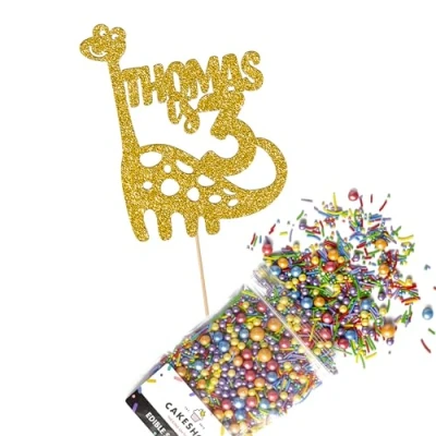 This Cakeshop Cake Decorating Pack includes 1 x 480gsm Double Sided Glitter Card Topper & 25g Cake Sprinkles (option to upgrade to 50g while customising) - perfect for your party or celebration! Cakeshop Sprinkles are Vegan, Gluten Free, Lactose free and Nut Free, all while looking amazing in striking colours and an assortment of sizes for a truly 'premium' finish Size: Sprinkles pack (perfect for a large cake) 25g, you can also upgrade to a 50g pack when customising your topper | Glitter Topper Approx 152mm (6") x 175mm (7") Toppers make a great keepsake to remember this special occasion forever, often our customers will remove the support sick and use on bedroom doors (until their next birthday!) Cakeshop Glitter Toppers are made from 480gsm premium double sided glitter card, select which colour topper you'd like then click 'Customise' to add your text personalisation and choose your sprinkles Choose from either Metallic or Rainbow sprinkles and upgrade to 50g packs in the 'Customise' section, so that you can match your sprinkles to your theme (or save them for next time!) All 'Cakeshop Cake Decorating Packs' come beautifully packed with simple to understand instructions so that you can quickly turn any cake, home made or shop bought (we wont tell!) into the perfect cake After you have added your custom information in the 'Customise Now' section our designers hand make your topper in the same font, style and topper colour as the design you've selected Cakeshop have been making the highest quality Cake Decorations since 2011 - we have thousands of design options available in our store for every occasion and theme (click 'visit the cakeshop store' above) It should go without saying - but Glitter Card toppers are flamable! We therefore recommend using only Acrylic toppers alongside candles for safety