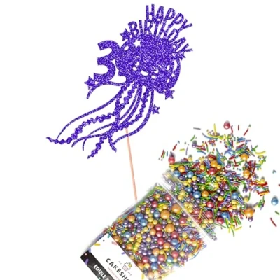 This Cakeshop Cake Decorating Pack includes 1 x 480gsm Double Sided Glitter Card Topper & 25g Cake Sprinkles (option to upgrade to 50g while customising) - perfect for your party or celebration! Cakeshop Sprinkles are Vegan, Gluten Free, Lactose free and Nut Free, all while looking amazing in striking colours and an assortment of sizes for a truly 'premium' finish Size: Sprinkles pack (perfect for a large cake) 25g, you can also upgrade to a 50g pack when customising your topper | Glitter Topper Approx 152mm (6") x 175mm (7") Toppers make a great keepsake to remember this special occasion forever, often our customers will remove the support sick and use on bedroom doors (until their next birthday!) Cakeshop Glitter Toppers are made from 480gsm premium double sided glitter card, select which colour topper you'd like then click 'Customise' to add your text personalisation and choose your sprinkles Choose from either Metallic or Rainbow sprinkles and upgrade to 50g packs in the 'Customise' section, so that you can match your sprinkles to your theme (or save them for next time!) All 'Cakeshop Cake Decorating Packs' come beautifully packed with simple to understand instructions so that you can quickly turn any cake, home made or shop bought (we wont tell!) into the perfect cake After you have added your custom information in the 'Customise Now' section our designers hand make your topper in the same font, style and topper colour as the design you've selected Cakeshop have been making the highest quality Cake Decorations since 2011 - we have thousands of design options available in our store for every occasion and theme (click 'visit the cakeshop store' above) It should go without saying - but Glitter Card toppers are flamable! We therefore recommend using only Acrylic toppers alongside candles for safety