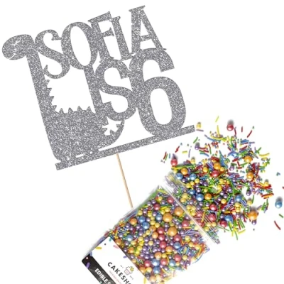This Cakeshop Cake Decorating Pack includes 1 x 480gsm Double Sided Glitter Card Topper & 25g Cake Sprinkles (option to upgrade to 50g while customising) - perfect for your party or celebration! Cakeshop Sprinkles are Vegan, Gluten Free, Lactose free and Nut Free, all while looking amazing in striking colours and an assortment of sizes for a truly 'premium' finish Size: Sprinkles pack (perfect for a large cake) 25g, you can also upgrade to a 50g pack when customising your topper | Glitter Topper Approx 152mm (6") x 175mm (7") Toppers make a great keepsake to remember this special occasion forever, often our customers will remove the support sick and use on bedroom doors (until their next birthday!) Cakeshop Glitter Toppers are made from 480gsm premium double sided glitter card, select which colour topper you'd like then click 'Customise' to add your text personalisation and choose your sprinkles Choose from either Metallic or Rainbow sprinkles and upgrade to 50g packs in the 'Customise' section, so that you can match your sprinkles to your theme (or save them for next time!) All 'Cakeshop Cake Decorating Packs' come beautifully packed with simple to understand instructions so that you can quickly turn any cake, home made or shop bought (we wont tell!) into the perfect cake After you have added your custom information in the 'Customise Now' section our designers hand make your topper in the same font, style and topper colour as the design you've selected Cakeshop have been making the highest quality Cake Decorations since 2011 - we have thousands of design options available in our store for every occasion and theme (click 'visit the cakeshop store' above) It should go without saying - but Glitter Card toppers are flamable! We therefore recommend using only Acrylic toppers alongside candles for safety