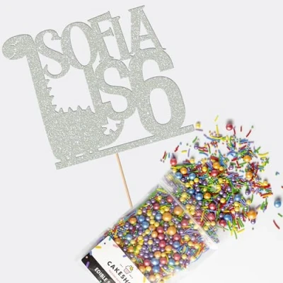 This Cakeshop Cake Decorating Pack includes 1 x 480gsm Double Sided Glitter Card Topper & 25g Cake Sprinkles (option to upgrade to 50g while customising) - perfect for your party or celebration! Cakeshop Sprinkles are Vegan, Gluten Free, Lactose free and Nut Free, all while looking amazing in striking colours and an assortment of sizes for a truly 'premium' finish Size: Sprinkles pack (perfect for a large cake) 25g, you can also upgrade to a 50g pack when customising your topper | Glitter Topper Approx 152mm (6") x 175mm (7") Toppers make a great keepsake to remember this special occasion forever, often our customers will remove the support sick and use on bedroom doors (until their next birthday!) Cakeshop Glitter Toppers are made from 480gsm premium double sided glitter card, select which colour topper you'd like then click 'Customise' to add your text personalisation and choose your sprinkles Choose from either Metallic or Rainbow sprinkles and upgrade to 50g packs in the 'Customise' section, so that you can match your sprinkles to your theme (or save them for next time!) All 'Cakeshop Cake Decorating Packs' come beautifully packed with simple to understand instructions so that you can quickly turn any cake, home made or shop bought (we wont tell!) into the perfect cake After you have added your custom information in the 'Customise Now' section our designers hand make your topper in the same font, style and topper colour as the design you've selected Cakeshop have been making the highest quality Cake Decorations since 2011 - we have thousands of design options available in our store for every occasion and theme (click 'visit the cakeshop store' above) It should go without saying - but Glitter Card toppers are flamable! We therefore recommend using only Acrylic toppers alongside candles for safety