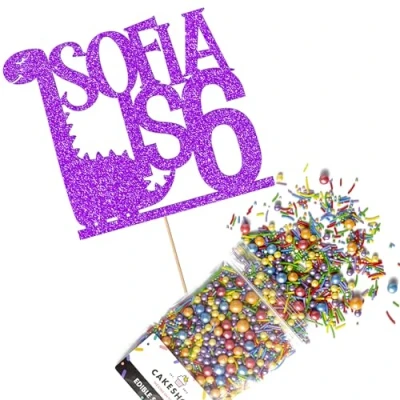 This Cakeshop Cake Decorating Pack includes 1 x 480gsm Double Sided Glitter Card Topper & 25g Cake Sprinkles (option to upgrade to 50g while customising) - perfect for your party or celebration! Cakeshop Sprinkles are Vegan, Gluten Free, Lactose free and Nut Free, all while looking amazing in striking colours and an assortment of sizes for a truly 'premium' finish Size: Sprinkles pack (perfect for a large cake) 25g, you can also upgrade to a 50g pack when customising your topper | Glitter Topper Approx 152mm (6") x 175mm (7") Toppers make a great keepsake to remember this special occasion forever, often our customers will remove the support sick and use on bedroom doors (until their next birthday!) Cakeshop Glitter Toppers are made from 480gsm premium double sided glitter card, select which colour topper you'd like then click 'Customise' to add your text personalisation and choose your sprinkles Choose from either Metallic or Rainbow sprinkles and upgrade to 50g packs in the 'Customise' section, so that you can match your sprinkles to your theme (or save them for next time!) All 'Cakeshop Cake Decorating Packs' come beautifully packed with simple to understand instructions so that you can quickly turn any cake, home made or shop bought (we wont tell!) into the perfect cake After you have added your custom information in the 'Customise Now' section our designers hand make your topper in the same font, style and topper colour as the design you've selected Cakeshop have been making the highest quality Cake Decorations since 2011 - we have thousands of design options available in our store for every occasion and theme (click 'visit the cakeshop store' above) It should go without saying - but Glitter Card toppers are flamable! We therefore recommend using only Acrylic toppers alongside candles for safety