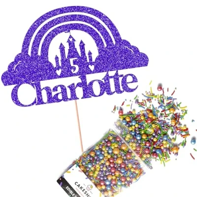 This Cakeshop Cake Decorating Pack includes 1 x 480gsm Double Sided Glitter Card Topper & 25g Cake Sprinkles (option to upgrade to 50g while customising) - perfect for your party or celebration! Cakeshop Sprinkles are Vegan, Gluten Free, Lactose free and Nut Free, all while looking amazing in striking colours and an assortment of sizes for a truly 'premium' finish Size: Sprinkles pack (perfect for a large cake) 25g, you can also upgrade to a 50g pack when customising your topper | Glitter Topper Approx 152mm (6") x 175mm (7") Toppers make a great keepsake to remember this special occasion forever, often our customers will remove the support sick and use on bedroom doors (until their next birthday!) Cakeshop Glitter Toppers are made from 480gsm premium double sided glitter card, select which colour topper you'd like then click 'Customise' to add your text personalisation and choose your sprinkles Choose from either Metallic or Rainbow sprinkles and upgrade to 50g packs in the 'Customise' section, so that you can match your sprinkles to your theme (or save them for next time!) All 'Cakeshop Cake Decorating Packs' come beautifully packed with simple to understand instructions so that you can quickly turn any cake, home made or shop bought (we wont tell!) into the perfect cake After you have added your custom information in the 'Customise Now' section our designers hand make your topper in the same font, style and topper colour as the design you've selected Cakeshop have been making the highest quality Cake Decorations since 2011 - we have thousands of design options available in our store for every occasion and theme (click 'visit the cakeshop store' above) It should go without saying - but Glitter Card toppers are flamable! We therefore recommend using only Acrylic toppers alongside candles for safety