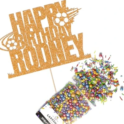 This Cakeshop Cake Decorating Pack includes 1 x 480gsm Double Sided Glitter Card Topper & 25g Cake Sprinkles (option to upgrade to 50g while customising) - perfect for your party or celebration! Cakeshop Sprinkles are Vegan, Gluten Free, Lactose free and Nut Free, all while looking amazing in striking colours and an assortment of sizes for a truly 'premium' finish Size: Sprinkles pack (perfect for a large cake) 25g, you can also upgrade to a 50g pack when customising your topper | Glitter Topper Approx 152mm (6") x 175mm (7") Toppers make a great keepsake to remember this special occasion forever, often our customers will remove the support sick and use on bedroom doors (until their next birthday!) Cakeshop Glitter Toppers are made from 480gsm premium double sided glitter card, select which colour topper you'd like then click 'Customise' to add your text personalisation and choose your sprinkles Choose from either Metallic or Rainbow sprinkles and upgrade to 50g packs in the 'Customise' section, so that you can match your sprinkles to your theme (or save them for next time!) All 'Cakeshop Cake Decorating Packs' come beautifully packed with simple to understand instructions so that you can quickly turn any cake, home made or shop bought (we wont tell!) into the perfect cake After you have added your custom information in the 'Customise Now' section our designers hand make your topper in the same font, style and topper colour as the design you've selected Cakeshop have been making the highest quality Cake Decorations since 2011 - we have thousands of design options available in our store for every occasion and theme (click 'visit the cakeshop store' above) It should go without saying - but Glitter Card toppers are flamable! We therefore recommend using only Acrylic toppers alongside candles for safety
