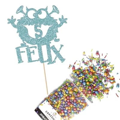 This Cakeshop Cake Decorating Pack includes 1 x 480gsm Double Sided Glitter Card Topper & 25g Cake Sprinkles (option to upgrade to 50g while customising) - perfect for your party or celebration! Cakeshop Sprinkles are Vegan, Gluten Free, Lactose free and Nut Free, all while looking amazing in striking colours and an assortment of sizes for a truly 'premium' finish Size: Sprinkles pack (perfect for a large cake) 25g, you can also upgrade to a 50g pack when customising your topper | Glitter Topper Approx 152mm (6") x 175mm (7") Toppers make a great keepsake to remember this special occasion forever, often our customers will remove the support sick and use on bedroom doors (until their next birthday!) Cakeshop Glitter Toppers are made from 480gsm premium double sided glitter card, select which colour topper you'd like then click 'Customise' to add your text personalisation and choose your sprinkles Choose from either Metallic or Rainbow sprinkles and upgrade to 50g packs in the 'Customise' section, so that you can match your sprinkles to your theme (or save them for next time!) All 'Cakeshop Cake Decorating Packs' come beautifully packed with simple to understand instructions so that you can quickly turn any cake, home made or shop bought (we wont tell!) into the perfect cake After you have added your custom information in the 'Customise Now' section our designers hand make your topper in the same font, style and topper colour as the design you've selected Cakeshop have been making the highest quality Cake Decorations since 2011 - we have thousands of design options available in our store for every occasion and theme (click 'visit the cakeshop store' above) It should go without saying - but Glitter Card toppers are flamable! We therefore recommend using only Acrylic toppers alongside candles for safety
