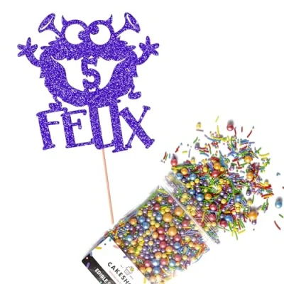 This Cakeshop Cake Decorating Pack includes 1 x 480gsm Double Sided Glitter Card Topper & 25g Cake Sprinkles (option to upgrade to 50g while customising) - perfect for your party or celebration! Cakeshop Sprinkles are Vegan, Gluten Free, Lactose free and Nut Free, all while looking amazing in striking colours and an assortment of sizes for a truly 'premium' finish Size: Sprinkles pack (perfect for a large cake) 25g, you can also upgrade to a 50g pack when customising your topper | Glitter Topper Approx 152mm (6") x 175mm (7") Toppers make a great keepsake to remember this special occasion forever, often our customers will remove the support sick and use on bedroom doors (until their next birthday!) Cakeshop Glitter Toppers are made from 480gsm premium double sided glitter card, select which colour topper you'd like then click 'Customise' to add your text personalisation and choose your sprinkles Choose from either Metallic or Rainbow sprinkles and upgrade to 50g packs in the 'Customise' section, so that you can match your sprinkles to your theme (or save them for next time!) All 'Cakeshop Cake Decorating Packs' come beautifully packed with simple to understand instructions so that you can quickly turn any cake, home made or shop bought (we wont tell!) into the perfect cake After you have added your custom information in the 'Customise Now' section our designers hand make your topper in the same font, style and topper colour as the design you've selected Cakeshop have been making the highest quality Cake Decorations since 2011 - we have thousands of design options available in our store for every occasion and theme (click 'visit the cakeshop store' above) It should go without saying - but Glitter Card toppers are flamable! We therefore recommend using only Acrylic toppers alongside candles for safety