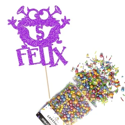 This Cakeshop Cake Decorating Pack includes 1 x 480gsm Double Sided Glitter Card Topper & 25g Cake Sprinkles (option to upgrade to 50g while customising) - perfect for your party or celebration! Cakeshop Sprinkles are Vegan, Gluten Free, Lactose free and Nut Free, all while looking amazing in striking colours and an assortment of sizes for a truly 'premium' finish Size: Sprinkles pack (perfect for a large cake) 25g, you can also upgrade to a 50g pack when customising your topper | Glitter Topper Approx 152mm (6") x 175mm (7") Toppers make a great keepsake to remember this special occasion forever, often our customers will remove the support sick and use on bedroom doors (until their next birthday!) Cakeshop Glitter Toppers are made from 480gsm premium double sided glitter card, select which colour topper you'd like then click 'Customise' to add your text personalisation and choose your sprinkles Choose from either Metallic or Rainbow sprinkles and upgrade to 50g packs in the 'Customise' section, so that you can match your sprinkles to your theme (or save them for next time!) All 'Cakeshop Cake Decorating Packs' come beautifully packed with simple to understand instructions so that you can quickly turn any cake, home made or shop bought (we wont tell!) into the perfect cake After you have added your custom information in the 'Customise Now' section our designers hand make your topper in the same font, style and topper colour as the design you've selected Cakeshop have been making the highest quality Cake Decorations since 2011 - we have thousands of design options available in our store for every occasion and theme (click 'visit the cakeshop store' above) It should go without saying - but Glitter Card toppers are flamable! We therefore recommend using only Acrylic toppers alongside candles for safety