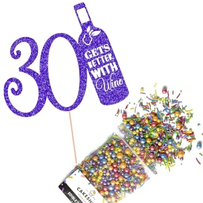 Cakeshop Cake Decoration Pack Funny Wine Theme Birthday Premium Double Sided Glitter Card Topper Sign & 25g Party of Sugar Sprinkles Custom Age (Bright Blue)