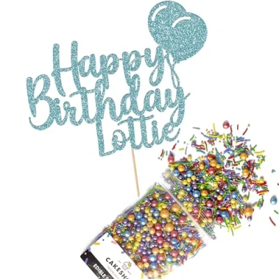 This Cakeshop Cake Decorating Pack includes 1 x 480gsm Double Sided Glitter Card Topper & 25g Cake Sprinkles (option to upgrade to 50g while customising) - perfect for your party or celebration! Cakeshop Sprinkles are Vegan, Gluten Free, Lactose free and Nut Free, all while looking amazing in striking colours and an assortment of sizes for a truly 'premium' finish Size: Sprinkles pack (perfect for a large cake) 25g, you can also upgrade to a 50g pack when customising your topper | Glitter Topper Approx 152mm (6") x 175mm (7") Toppers make a great keepsake to remember this special occasion forever, often our customers will remove the support sick and use on bedroom doors (until their next birthday!) Cakeshop Glitter Toppers are made from 480gsm premium double sided glitter card, select which colour topper you'd like then click 'Customise' to add your text personalisation and choose your sprinkles Choose from either Metallic or Rainbow sprinkles and upgrade to 50g packs in the 'Customise' section, so that you can match your sprinkles to your theme (or save them for next time!) All 'Cakeshop Cake Decorating Packs' come beautifully packed with simple to understand instructions so that you can quickly turn any cake, home made or shop bought (we wont tell!) into the perfect cake After you have added your custom information in the 'Customise Now' section our designers hand make your topper in the same font, style and topper colour as the design you've selected Cakeshop have been making the highest quality Cake Decorations since 2011 - we have thousands of design options available in our store for every occasion and theme (click 'visit the cakeshop store' above) It should go without saying - but Glitter Card toppers are flamable! We therefore recommend using only Acrylic toppers alongside candles for safety