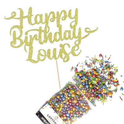 This Cakeshop Cake Decorating Pack includes 1 x 480gsm Double Sided Glitter Card Topper & 25g Cake Sprinkles (option to upgrade to 50g while customising) - perfect for your party or celebration! Cakeshop Sprinkles are Vegan, Gluten Free, Lactose free and Nut Free, all while looking amazing in striking colours and an assortment of sizes for a truly 'premium' finish Size: Sprinkles pack (perfect for a large cake) 25g, you can also upgrade to a 50g pack when customising your topper | Glitter Topper Approx 152mm (6") x 175mm (7") Toppers make a great keepsake to remember this special occasion forever, often our customers will remove the support sick and use on bedroom doors (until their next birthday!) Cakeshop Glitter Toppers are made from 480gsm premium double sided glitter card, select which colour topper you'd like then click 'Customise' to add your text personalisation and choose your sprinkles Choose from either Metallic or Rainbow sprinkles and upgrade to 50g packs in the 'Customise' section, so that you can match your sprinkles to your theme (or save them for next time!) All 'Cakeshop Cake Decorating Packs' come beautifully packed with simple to understand instructions so that you can quickly turn any cake, home made or shop bought (we wont tell!) into the perfect cake After you have added your custom information in the 'Customise Now' section our designers hand make your topper in the same font, style and topper colour as the design you've selected Cakeshop have been making the highest quality Cake Decorations since 2011 - we have thousands of design options available in our store for every occasion and theme (click 'visit the cakeshop store' above) It should go without saying - but Glitter Card toppers are flamable! We therefore recommend using only Acrylic toppers alongside candles for safety