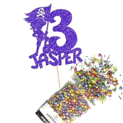 This Cakeshop Cake Decorating Pack includes 1 x 480gsm Double Sided Glitter Card Topper & 25g Cake Sprinkles (option to upgrade to 50g while customising) - perfect for your party or celebration! Cakeshop Sprinkles are Vegan, Gluten Free, Lactose free and Nut Free, all while looking amazing in striking colours and an assortment of sizes for a truly 'premium' finish Size: Sprinkles pack (perfect for a large cake) 25g, you can also upgrade to a 50g pack when customising your topper | Glitter Topper Approx 152mm (6") x 175mm (7") Toppers make a great keepsake to remember this special occasion forever, often our customers will remove the support sick and use on bedroom doors (until their next birthday!) Cakeshop Glitter Toppers are made from 480gsm premium double sided glitter card, select which colour topper you'd like then click 'Customise' to add your text personalisation and choose your sprinkles Choose from either Metallic or Rainbow sprinkles and upgrade to 50g packs in the 'Customise' section, so that you can match your sprinkles to your theme (or save them for next time!) All 'Cakeshop Cake Decorating Packs' come beautifully packed with simple to understand instructions so that you can quickly turn any cake, home made or shop bought (we wont tell!) into the perfect cake After you have added your custom information in the 'Customise Now' section our designers hand make your topper in the same font, style and topper colour as the design you've selected Cakeshop have been making the highest quality Cake Decorations since 2011 - we have thousands of design options available in our store for every occasion and theme (click 'visit the cakeshop store' above) It should go without saying - but Glitter Card toppers are flamable! We therefore recommend using only Acrylic toppers alongside candles for safety