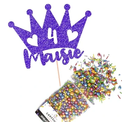 This Cakeshop Cake Decorating Pack includes 1 x 480gsm Double Sided Glitter Card Topper & 25g Cake Sprinkles (option to upgrade to 50g while customising) - perfect for your party or celebration! Cakeshop Sprinkles are Vegan, Gluten Free, Lactose free and Nut Free, all while looking amazing in striking colours and an assortment of sizes for a truly 'premium' finish Size: Sprinkles pack (perfect for a large cake) 25g, you can also upgrade to a 50g pack when customising your topper | Glitter Topper Approx 152mm (6") x 175mm (7") Toppers make a great keepsake to remember this special occasion forever, often our customers will remove the support sick and use on bedroom doors (until their next birthday!) Cakeshop Glitter Toppers are made from 480gsm premium double sided glitter card, select which colour topper you'd like then click 'Customise' to add your text personalisation and choose your sprinkles Choose from either Metallic or Rainbow sprinkles and upgrade to 50g packs in the 'Customise' section, so that you can match your sprinkles to your theme (or save them for next time!) All 'Cakeshop Cake Decorating Packs' come beautifully packed with simple to understand instructions so that you can quickly turn any cake, home made or shop bought (we wont tell!) into the perfect cake After you have added your custom information in the 'Customise Now' section our designers hand make your topper in the same font, style and topper colour as the design you've selected Cakeshop have been making the highest quality Cake Decorations since 2011 - we have thousands of design options available in our store for every occasion and theme (click 'visit the cakeshop store' above) It should go without saying - but Glitter Card toppers are flamable! We therefore recommend using only Acrylic toppers alongside candles for safety