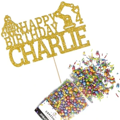This Cakeshop Cake Decorating Pack includes 1 x 480gsm Double Sided Glitter Card Topper & 25g Cake Sprinkles (option to upgrade to 50g while customising) - perfect for your party or celebration! Cakeshop Sprinkles are Vegan, Gluten Free, Lactose free and Nut Free, all while looking amazing in striking colours and an assortment of sizes for a truly 'premium' finish Size: Sprinkles pack (perfect for a large cake) 25g, you can also upgrade to a 50g pack when customising your topper | Glitter Topper Approx 152mm (6") x 175mm (7") Toppers make a great keepsake to remember this special occasion forever, often our customers will remove the support sick and use on bedroom doors (until their next birthday!) Cakeshop Glitter Toppers are made from 480gsm premium double sided glitter card, select which colour topper you'd like then click 'Customise' to add your text personalisation and choose your sprinkles Choose from either Metallic or Rainbow sprinkles and upgrade to 50g packs in the 'Customise' section, so that you can match your sprinkles to your theme (or save them for next time!) All 'Cakeshop Cake Decorating Packs' come beautifully packed with simple to understand instructions so that you can quickly turn any cake, home made or shop bought (we wont tell!) into the perfect cake After you have added your custom information in the 'Customise Now' section our designers hand make your topper in the same font, style and topper colour as the design you've selected Cakeshop have been making the highest quality Cake Decorations since 2011 - we have thousands of design options available in our store for every occasion and theme (click 'visit the cakeshop store' above) It should go without saying - but Glitter Card toppers are flamable! We therefore recommend using only Acrylic toppers alongside candles for safety