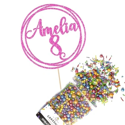 This Cakeshop Cake Decorating Pack includes 1 x 480gsm Double Sided Glitter Card Topper & 25g Cake Sprinkles (option to upgrade to 50g while customising) - perfect for your party or celebration! Cakeshop Sprinkles are Vegan, Gluten Free, Lactose free and Nut Free, all while looking amazing in striking colours and an assortment of sizes for a truly 'premium' finish Size: Sprinkles pack (perfect for a large cake) 25g, you can also upgrade to a 50g pack when customising your topper | Glitter Topper Approx 152mm (6") x 175mm (7") Toppers make a great keepsake to remember this special occasion forever, often our customers will remove the support sick and use on bedroom doors (until their next birthday!) Cakeshop Glitter Toppers are made from 480gsm premium double sided glitter card, select which colour topper you'd like then click 'Customise' to add your text personalisation and choose your sprinkles Choose from either Metallic or Rainbow sprinkles and upgrade to 50g packs in the 'Customise' section, so that you can match your sprinkles to your theme (or save them for next time!) All 'Cakeshop Cake Decorating Packs' come beautifully packed with simple to understand instructions so that you can quickly turn any cake, home made or shop bought (we wont tell!) into the perfect cake After you have added your custom information in the 'Customise Now' section our designers hand make your topper in the same font, style and topper colour as the design you've selected Cakeshop have been making the highest quality Cake Decorations since 2011 - we have thousands of design options available in our store for every occasion and theme (click 'visit the cakeshop store' above) It should go without saying - but Glitter Card toppers are flamable! We therefore recommend using only Acrylic toppers alongside candles for safety