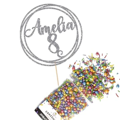 This Cakeshop Cake Decorating Pack includes 1 x 480gsm Double Sided Glitter Card Topper & 25g Cake Sprinkles (option to upgrade to 50g while customising) - perfect for your party or celebration! Cakeshop Sprinkles are Vegan, Gluten Free, Lactose free and Nut Free, all while looking amazing in striking colours and an assortment of sizes for a truly 'premium' finish Size: Sprinkles pack (perfect for a large cake) 25g, you can also upgrade to a 50g pack when customising your topper | Glitter Topper Approx 152mm (6") x 175mm (7") Toppers make a great keepsake to remember this special occasion forever, often our customers will remove the support sick and use on bedroom doors (until their next birthday!) Cakeshop Glitter Toppers are made from 480gsm premium double sided glitter card, select which colour topper you'd like then click 'Customise' to add your text personalisation and choose your sprinkles Choose from either Metallic or Rainbow sprinkles and upgrade to 50g packs in the 'Customise' section, so that you can match your sprinkles to your theme (or save them for next time!) All 'Cakeshop Cake Decorating Packs' come beautifully packed with simple to understand instructions so that you can quickly turn any cake, home made or shop bought (we wont tell!) into the perfect cake After you have added your custom information in the 'Customise Now' section our designers hand make your topper in the same font, style and topper colour as the design you've selected Cakeshop have been making the highest quality Cake Decorations since 2011 - we have thousands of design options available in our store for every occasion and theme (click 'visit the cakeshop store' above) It should go without saying - but Glitter Card toppers are flamable! We therefore recommend using only Acrylic toppers alongside candles for safety