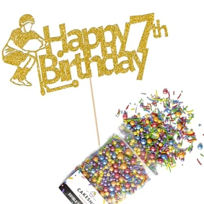 This Cakeshop Cake Decorating Pack includes 1 x 480gsm Double Sided Glitter Card Topper & 25g Cake Sprinkles (option to upgrade to 50g while customising) - perfect for your party or celebration! Cakeshop Sprinkles are Vegan, Gluten Free, Lactose free and Nut Free, all while looking amazing in striking colours and an assortment of sizes for a truly 'premium' finish Size: Sprinkles pack (perfect for a large cake) 25g, you can also upgrade to a 50g pack when customising your topper | Glitter Topper Approx 152mm (6") x 175mm (7") Toppers make a great keepsake to remember this special occasion forever, often our customers will remove the support sick and use on bedroom doors (until their next birthday!) Cakeshop Glitter Toppers are made from 480gsm premium double sided glitter card, select which colour topper you'd like then click 'Customise' to add your text personalisation and choose your sprinkles Choose from either Metallic or Rainbow sprinkles and upgrade to 50g packs in the 'Customise' section, so that you can match your sprinkles to your theme (or save them for next time!) All 'Cakeshop Cake Decorating Packs' come beautifully packed with simple to understand instructions so that you can quickly turn any cake, home made or shop bought (we wont tell!) into the perfect cake After you have added your custom information in the 'Customise Now' section our designers hand make your topper in the same font, style and topper colour as the design you've selected Cakeshop have been making the highest quality Cake Decorations since 2011 - we have thousands of design options available in our store for every occasion and theme (click 'visit the cakeshop store' above) It should go without saying - but Glitter Card toppers are flamable! We therefore recommend using only Acrylic toppers alongside candles for safety