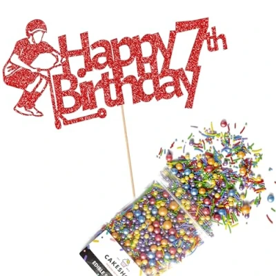 This Cakeshop Cake Decorating Pack includes 1 x 480gsm Double Sided Glitter Card Topper & 25g Cake Sprinkles (option to upgrade to 50g while customising) - perfect for your party or celebration! Cakeshop Sprinkles are Vegan, Gluten Free, Lactose free and Nut Free, all while looking amazing in striking colours and an assortment of sizes for a truly 'premium' finish Size: Sprinkles pack (perfect for a large cake) 25g, you can also upgrade to a 50g pack when customising your topper | Glitter Topper Approx 152mm (6") x 175mm (7") Toppers make a great keepsake to remember this special occasion forever, often our customers will remove the support sick and use on bedroom doors (until their next birthday!) Cakeshop Glitter Toppers are made from 480gsm premium double sided glitter card, select which colour topper you'd like then click 'Customise' to add your text personalisation and choose your sprinkles Choose from either Metallic or Rainbow sprinkles and upgrade to 50g packs in the 'Customise' section, so that you can match your sprinkles to your theme (or save them for next time!) All 'Cakeshop Cake Decorating Packs' come beautifully packed with simple to understand instructions so that you can quickly turn any cake, home made or shop bought (we wont tell!) into the perfect cake After you have added your custom information in the 'Customise Now' section our designers hand make your topper in the same font, style and topper colour as the design you've selected Cakeshop have been making the highest quality Cake Decorations since 2011 - we have thousands of design options available in our store for every occasion and theme (click 'visit the cakeshop store' above) It should go without saying - but Glitter Card toppers are flamable! We therefore recommend using only Acrylic toppers alongside candles for safety