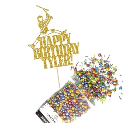 This Cakeshop Cake Decorating Pack includes 1 x 480gsm Double Sided Glitter Card Topper & 25g Cake Sprinkles (option to upgrade to 50g while customising) - perfect for your party or celebration! Cakeshop Sprinkles are Vegan, Gluten Free, Lactose free and Nut Free, all while looking amazing in striking colours and an assortment of sizes for a truly 'premium' finish Size: Sprinkles pack (perfect for a large cake) 25g, you can also upgrade to a 50g pack when customising your topper | Glitter Topper Approx 152mm (6") x 175mm (7") Toppers make a great keepsake to remember this special occasion forever, often our customers will remove the support sick and use on bedroom doors (until their next birthday!) Cakeshop Glitter Toppers are made from 480gsm premium double sided glitter card, select which colour topper you'd like then click 'Customise' to add your text personalisation and choose your sprinkles Choose from either Metallic or Rainbow sprinkles and upgrade to 50g packs in the 'Customise' section, so that you can match your sprinkles to your theme (or save them for next time!) All 'Cakeshop Cake Decorating Packs' come beautifully packed with simple to understand instructions so that you can quickly turn any cake, home made or shop bought (we wont tell!) into the perfect cake After you have added your custom information in the 'Customise Now' section our designers hand make your topper in the same font, style and topper colour as the design you've selected Cakeshop have been making the highest quality Cake Decorations since 2011 - we have thousands of design options available in our store for every occasion and theme (click 'visit the cakeshop store' above) It should go without saying - but Glitter Card toppers are flamable! We therefore recommend using only Acrylic toppers alongside candles for safety