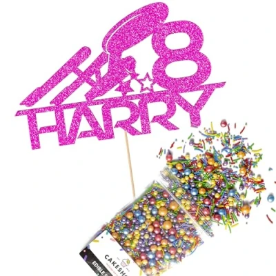 This Cakeshop Cake Decorating Pack includes 1 x 480gsm Double Sided Glitter Card Topper & 25g Cake Sprinkles (option to upgrade to 50g while customising) - perfect for your party or celebration! Cakeshop Sprinkles are Vegan, Gluten Free, Lactose free and Nut Free, all while looking amazing in striking colours and an assortment of sizes for a truly 'premium' finish Size: Sprinkles pack (perfect for a large cake) 25g, you can also upgrade to a 50g pack when customising your topper | Glitter Topper Approx 152mm (6") x 175mm (7") Toppers make a great keepsake to remember this special occasion forever, often our customers will remove the support sick and use on bedroom doors (until their next birthday!) Cakeshop Glitter Toppers are made from 480gsm premium double sided glitter card, select which colour topper you'd like then click 'Customise' to add your text personalisation and choose your sprinkles Choose from either Metallic or Rainbow sprinkles and upgrade to 50g packs in the 'Customise' section, so that you can match your sprinkles to your theme (or save them for next time!) All 'Cakeshop Cake Decorating Packs' come beautifully packed with simple to understand instructions so that you can quickly turn any cake, home made or shop bought (we wont tell!) into the perfect cake After you have added your custom information in the 'Customise Now' section our designers hand make your topper in the same font, style and topper colour as the design you've selected Cakeshop have been making the highest quality Cake Decorations since 2011 - we have thousands of design options available in our store for every occasion and theme (click 'visit the cakeshop store' above) It should go without saying - but Glitter Card toppers are flamable! We therefore recommend using only Acrylic toppers alongside candles for safety