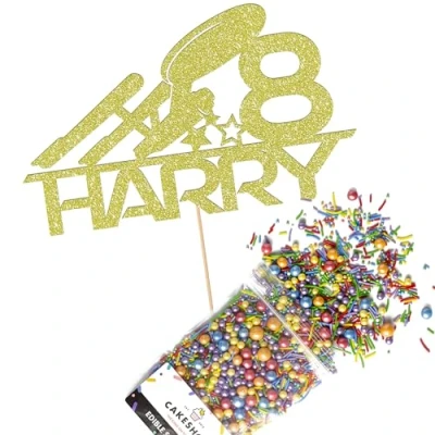 This Cakeshop Cake Decorating Pack includes 1 x 480gsm Double Sided Glitter Card Topper & 25g Cake Sprinkles (option to upgrade to 50g while customising) - perfect for your party or celebration! Cakeshop Sprinkles are Vegan, Gluten Free, Lactose free and Nut Free, all while looking amazing in striking colours and an assortment of sizes for a truly 'premium' finish Size: Sprinkles pack (perfect for a large cake) 25g, you can also upgrade to a 50g pack when customising your topper | Glitter Topper Approx 152mm (6") x 175mm (7") Toppers make a great keepsake to remember this special occasion forever, often our customers will remove the support sick and use on bedroom doors (until their next birthday!) Cakeshop Glitter Toppers are made from 480gsm premium double sided glitter card, select which colour topper you'd like then click 'Customise' to add your text personalisation and choose your sprinkles Choose from either Metallic or Rainbow sprinkles and upgrade to 50g packs in the 'Customise' section, so that you can match your sprinkles to your theme (or save them for next time!) All 'Cakeshop Cake Decorating Packs' come beautifully packed with simple to understand instructions so that you can quickly turn any cake, home made or shop bought (we wont tell!) into the perfect cake After you have added your custom information in the 'Customise Now' section our designers hand make your topper in the same font, style and topper colour as the design you've selected Cakeshop have been making the highest quality Cake Decorations since 2011 - we have thousands of design options available in our store for every occasion and theme (click 'visit the cakeshop store' above) It should go without saying - but Glitter Card toppers are flamable! We therefore recommend using only Acrylic toppers alongside candles for safety